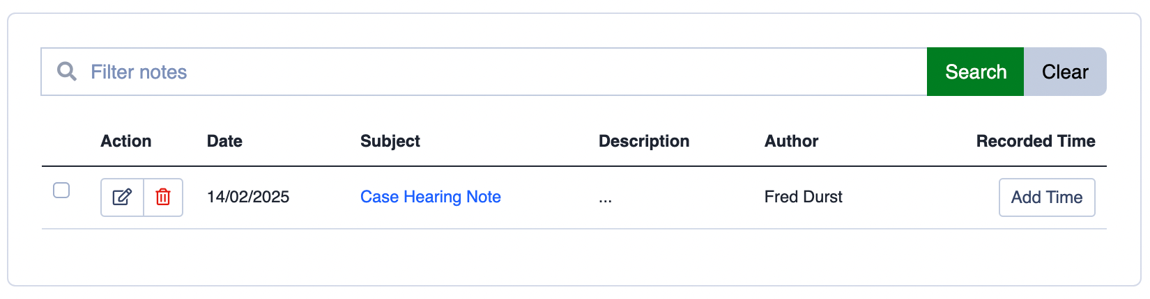 - Click on Add Time at the Note you want to log the time.